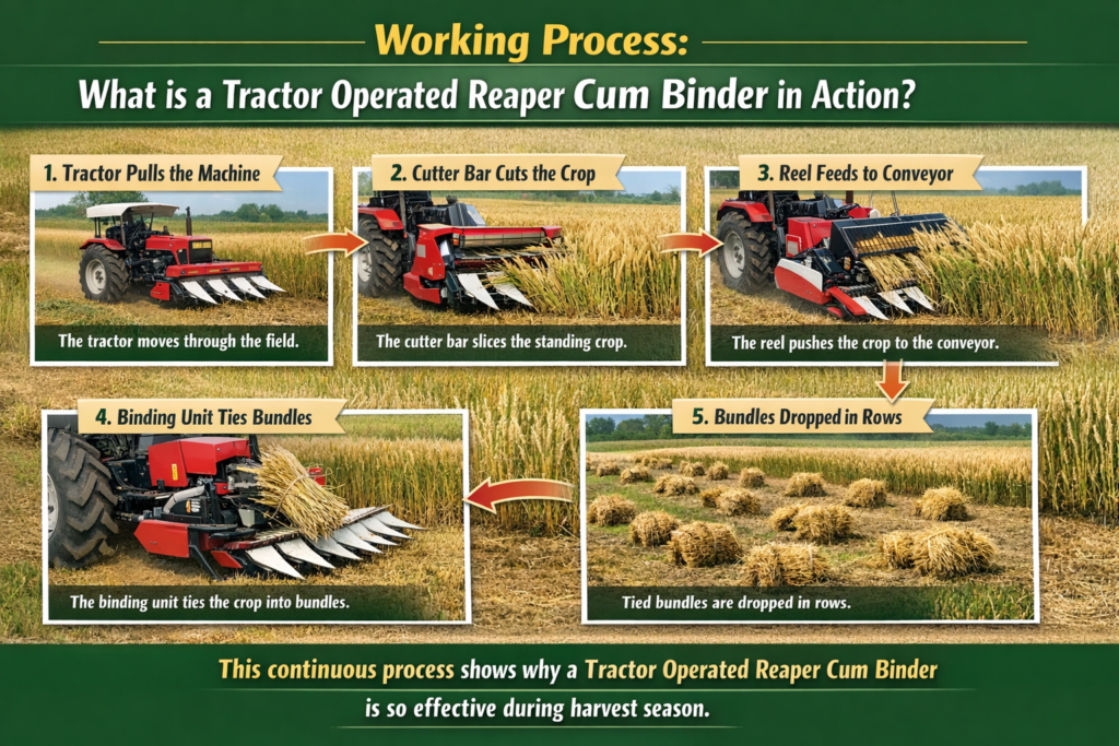 Working Process: What is a Tractor Operated Reaper Cum Binder in Action?